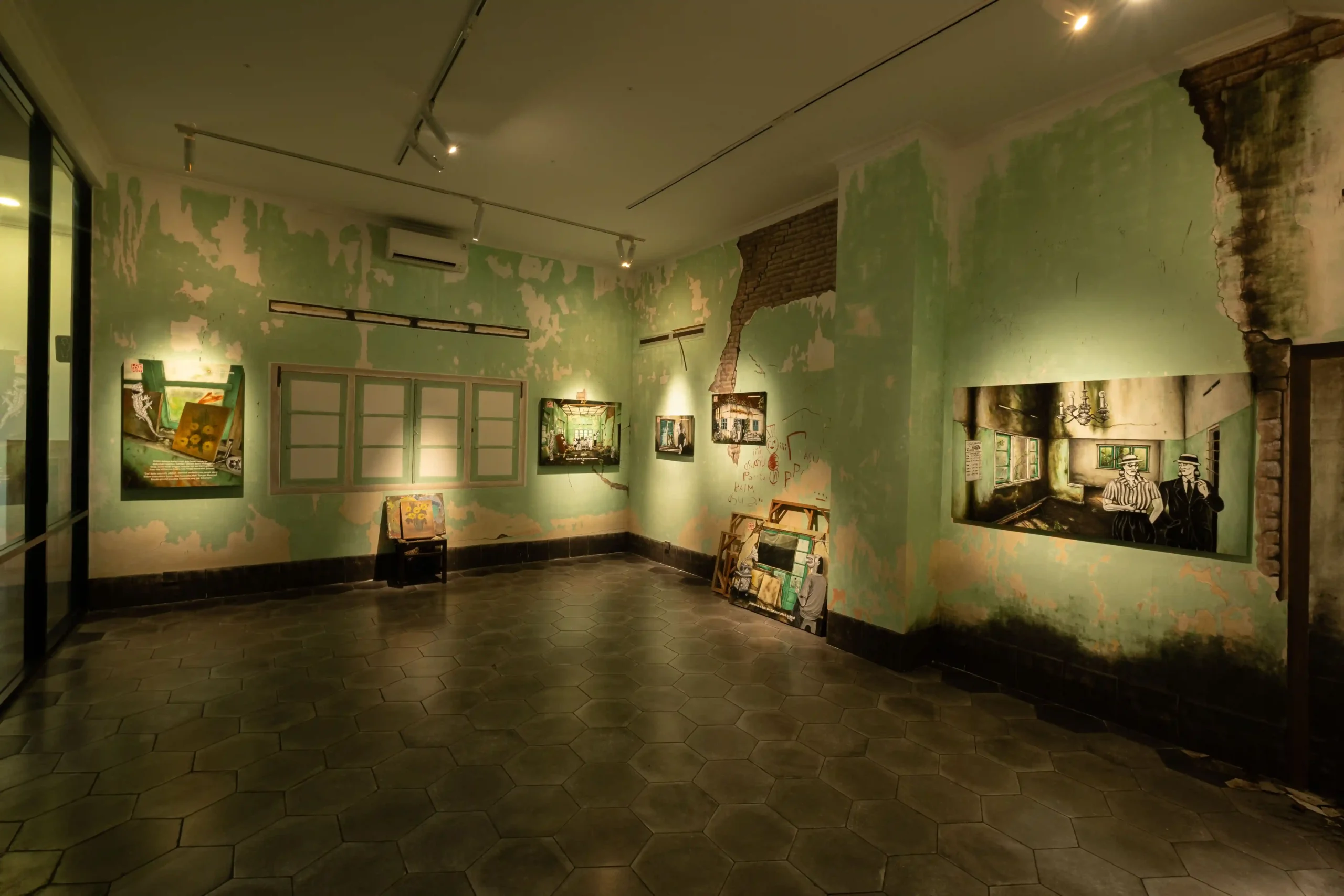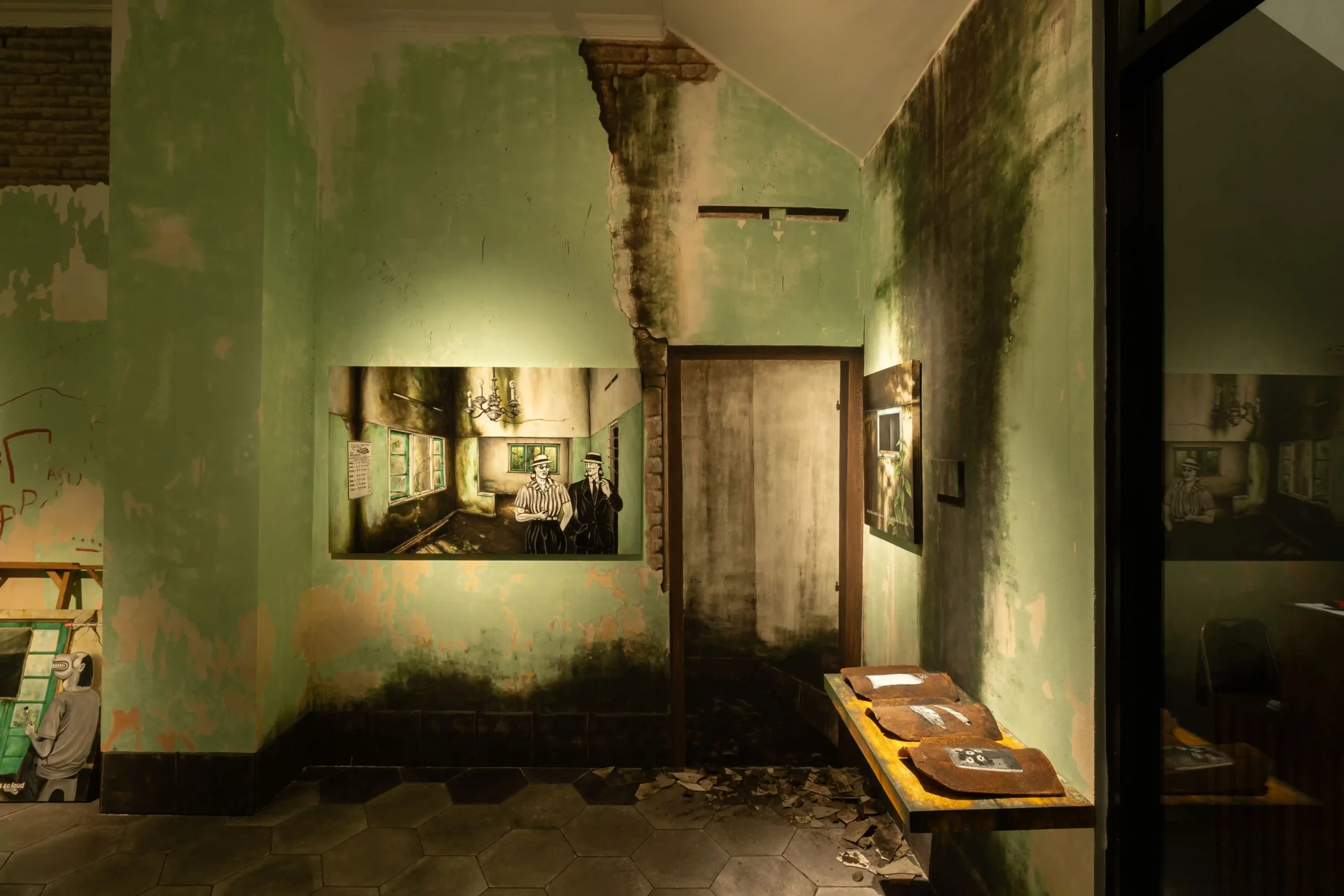 This question kept circling back to me as I moved through Suwung: Luruh dan Tumbuh (Suwung: Fading yet Pervading), Vendy Methodos’ solo presentation at kohesi Initiatives in Yogyakarta. Methodos builds his inquiry around the remnants of a former sugar factory and nearby houses in Sorogedug, on the city’s outskirts, where many of these buildings have been left in poor condition. The former sugar factory and the surrounding houses were once part of a colonial-era middle-class narrative that aspired for stability and prosperity. However, as industries changed, these homes lost their economic purpose and became trapped in limbo: not valuable enough (or perhaps too valuable) to renovate, yet not “entirely” abandoned. In this solo presentation, Methodos sees these spaces as if they carry traces of past lives, reimagining them through speculative gestures.