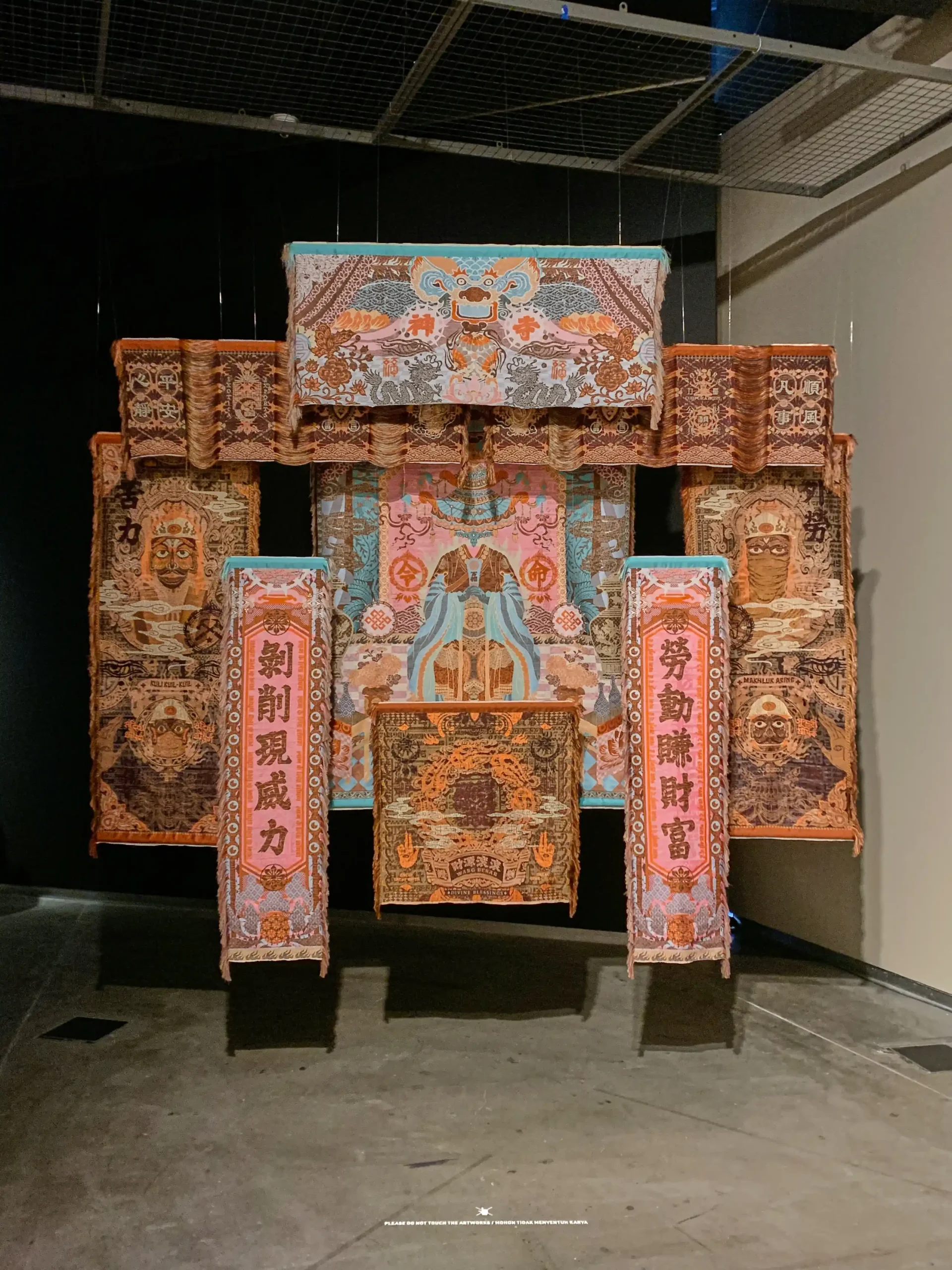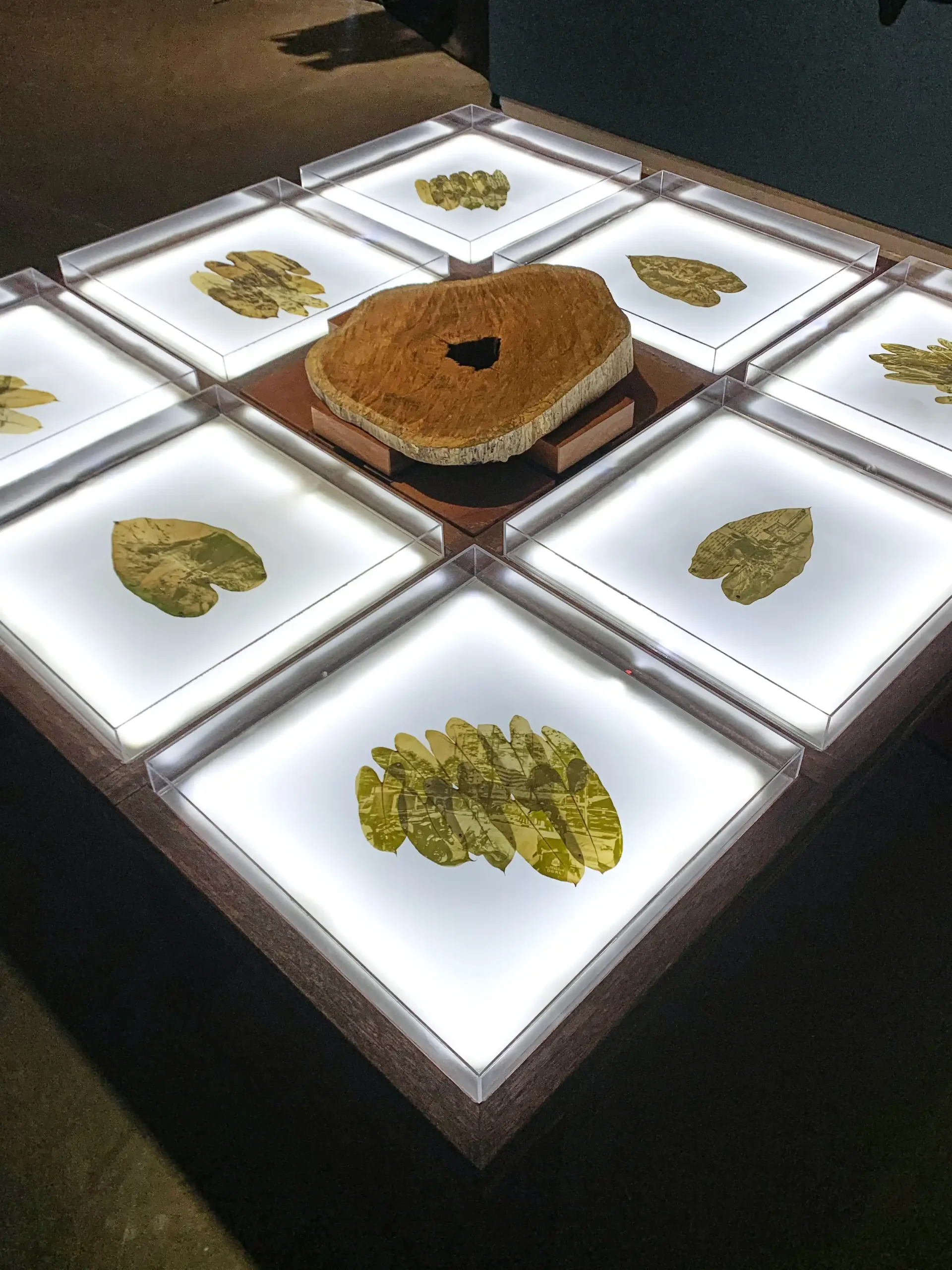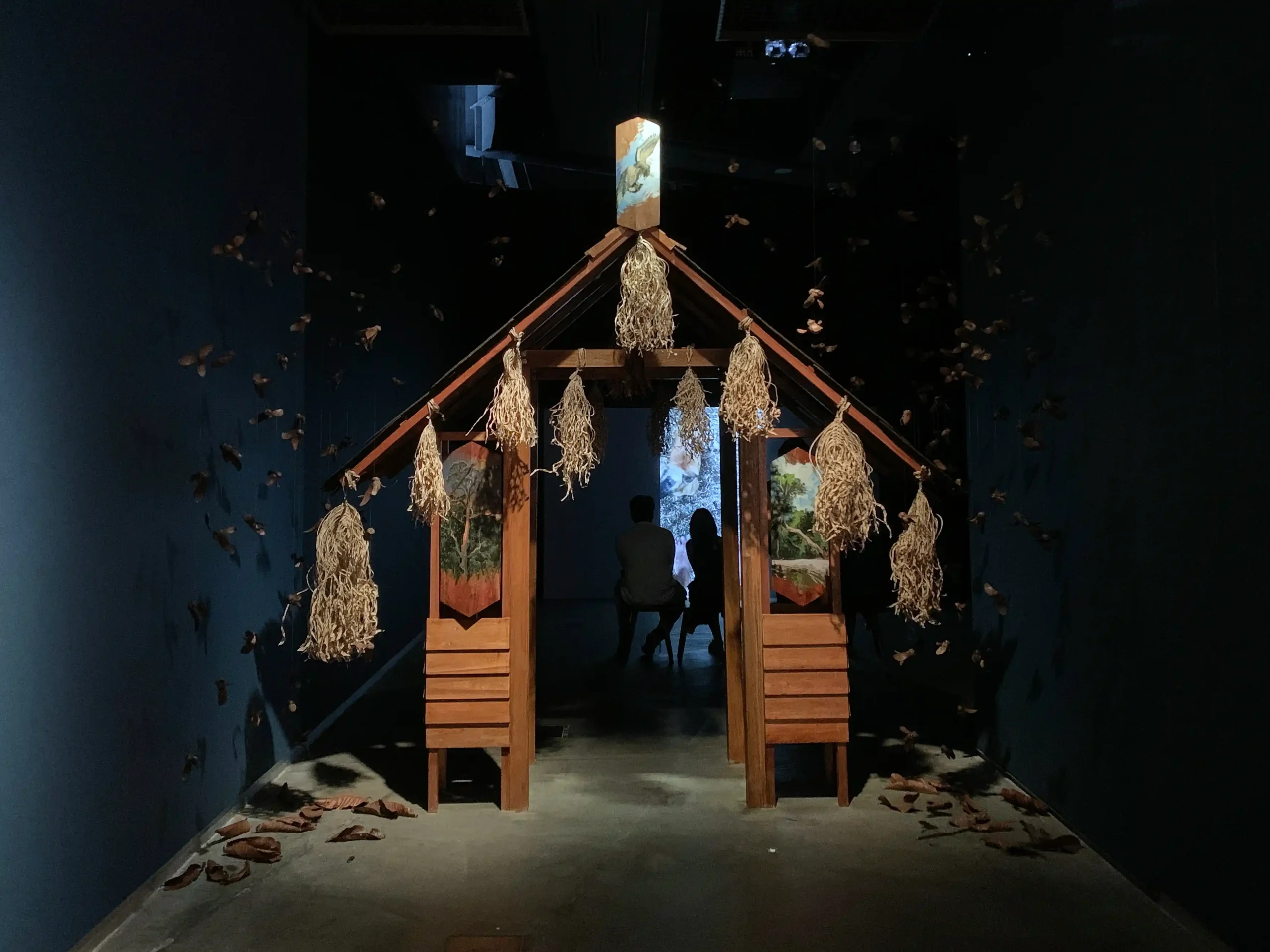 To the very right end of the gallery, Tiga Tawai’s immersive installation invites us to see how Kenyah Lepo’ Tao, a traditional community of Long Moh in Ulu Baram, Sarawak, protect their forest home by building a deep connection between land, culture, and collective survival. Syarifah Nadhirah also presents her approach towards nature with “No Roads Without Trees”, criticising Malaysia’s urban landscaping that prefers aesthetics over a more sustainable native ecosystem.