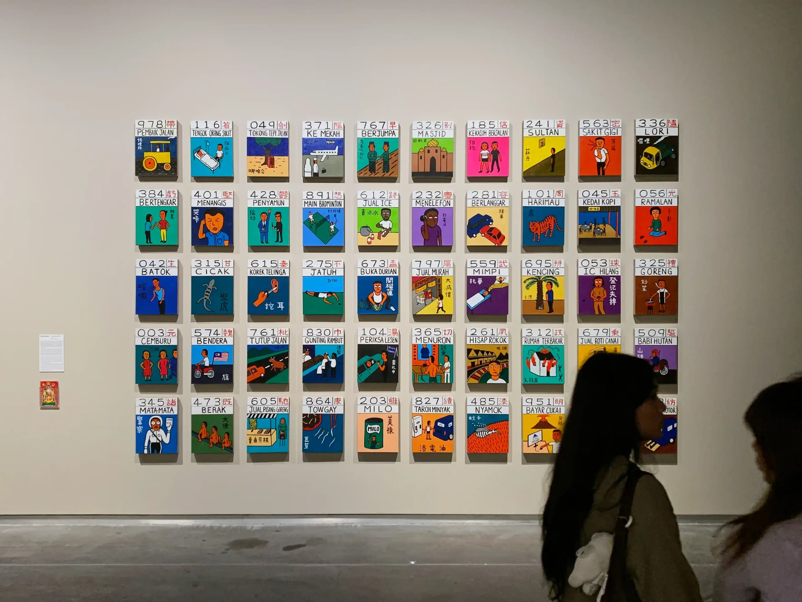 In “Da Bo Gong Book”, Ong Hieng Fuong reminisces into his childhood memory growing up in Tanjung Sepat through playful images, inspired by the encyclopedic compilation of different images from the everyday lives of Malaysians that one might encounter in a dream, with each image corresponding to a lucky number, known as the dreams booklet.